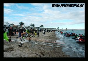 Race started at 09:00 a.m. with the Runabouts doing a Le Mans start and a minute later the stand-up riders went through the same procedure. The first rider who showed up on the beach after completing one lap was Nicolas Rius in front of Russian Ryabko and Craig Warner. Frenchman Jean-Baptiste Botti and South African Dustin Motzouris were the first two riders on the new Kawasaki four-stroke SX-R. Meanwhile the weather got rougher and many people experienced all sort of issues. Rius DNF quickly due to a worn clutch on his Yamaha leaving his team mate from France Cyrille Lemoine dry on the beach with no chance to ride in Havasu. The Portuguese team had some issues with the battery on their Kawasaki so they could not finish the race. Ford and Smith experienced more issues due to the selection of wrong fuel. Craig Warner was in top three riding his Kawasaki turbocharged Ultra until he experienced issues with his cracked aftermarket hull a fact that send him back to the beach as a spectator. KC Heidler was having a hard time when he got ejected from his Ultra over the handlebars at the last section of the race course and he found later on that he had fractured his Fibula. Mike Klippenstein experience a loose O2 sensor on his turbocharged ski and he lost some time but still he managed to finish an impressive third overall with his team mate Cristian D’Agostin. Ryabko did not manage to finish the race as his turbocharged Yamaha was in trouble on lap 23.
