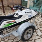 The illustrated Kawasaki 800 SX-R is equipped with a TBM cylinder head, Factory-Pipe Dry Pipe, modified oem hood, oem carbs with short filters, updated cooling, RRP pole, with Blowsion chin pad, 0 degree bars, trigger throttle, intake grate, oem ride plate and rear sponsons, AP Designs side mats, bilge pump and it is in a very good condition. Titles are on hand and it is FOR SALE with the trailer. Owner asks 7000euro obo. Located in Athens, Greece. Contact Jetskiworld.gr for further details.